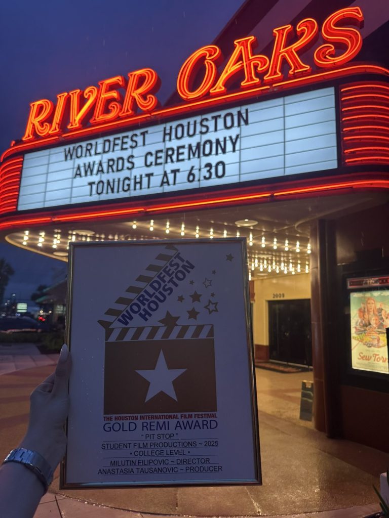 Кратки играни фил трилер под називом Pit stop – за који је сценарио написао и режирао Милутин Филиповић (28) из Мачванске Митровице, апсоловент Академије уметности у Београду, на прошлоговогдишњем Светском фестивалу независног филма у Хјустону од 24. априла до 3. маја, добио је престижну прву награду Gold remi award.